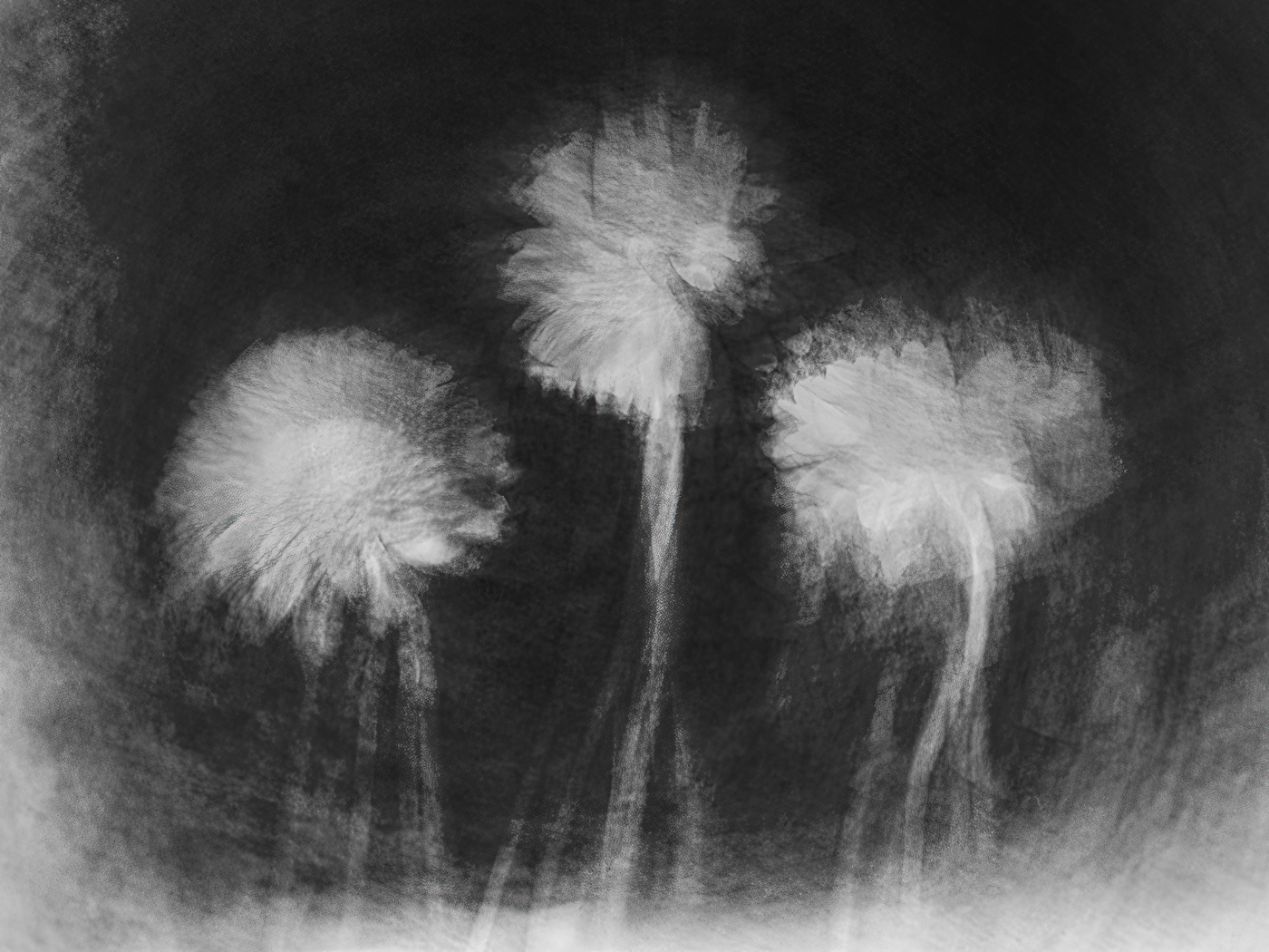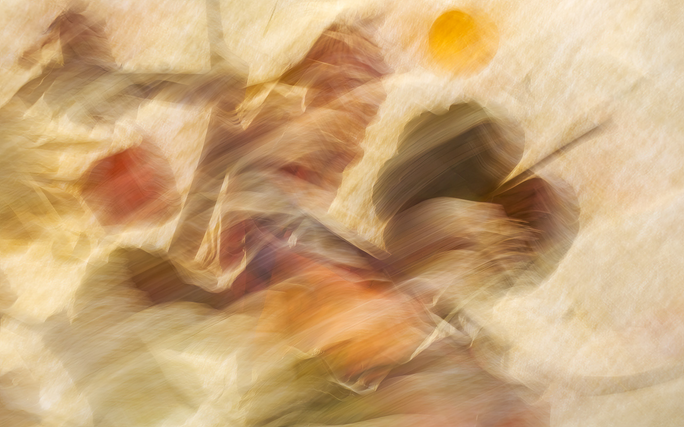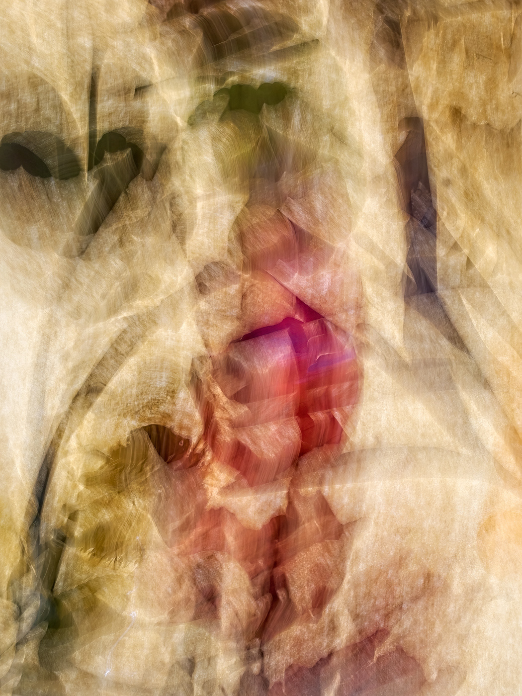 These images are created by photographing tissue paper, flowers, leaves and many other objects using different variations of Intentional Camera Movement (ICM). Some of these images are created by blending or merging multiple images. The whole becomes greater than the parts.